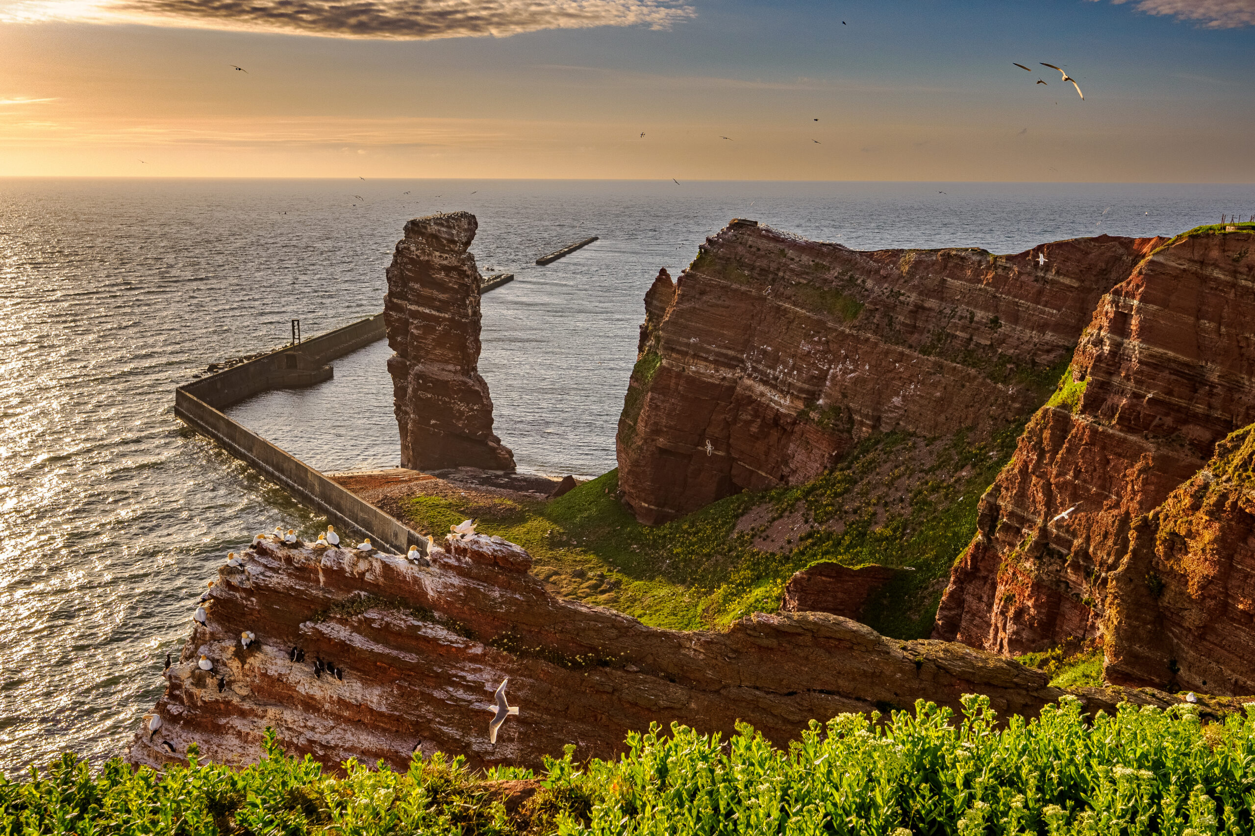 Ať už se vypravíte na Helgoland a Düne v zimě nebo v létě, vždy tam na vás bude čekat spousta zvířat a nečekaných zážitků. Ostrov je vzdálen od pevniny asi 40 km. Obývají jej z velké části Frísové. Stálých obyvatel žije na ostrově okolo 1500. V minulosti byl Helgoland součástí Šlesvicka, jež patřilo Dánsku. V roce 1807 Velké Británii a teprve v roce 1890 vyměnilo Německo ostrovy za Zanzibar. Do konce 2. světové války se na souostroví cvičily nálety. Na horní plošině ostrova jsou dodnes vidět díry po explozích leteckých bomb. Dnes se tam v klidu pasou domácí zvířata. Teprve až v roce 1952 se tam začali zabydlovat první civilisté. Symbol celého ostrova je skalnatý výběžek zvaný „Dlouhá Anna“.