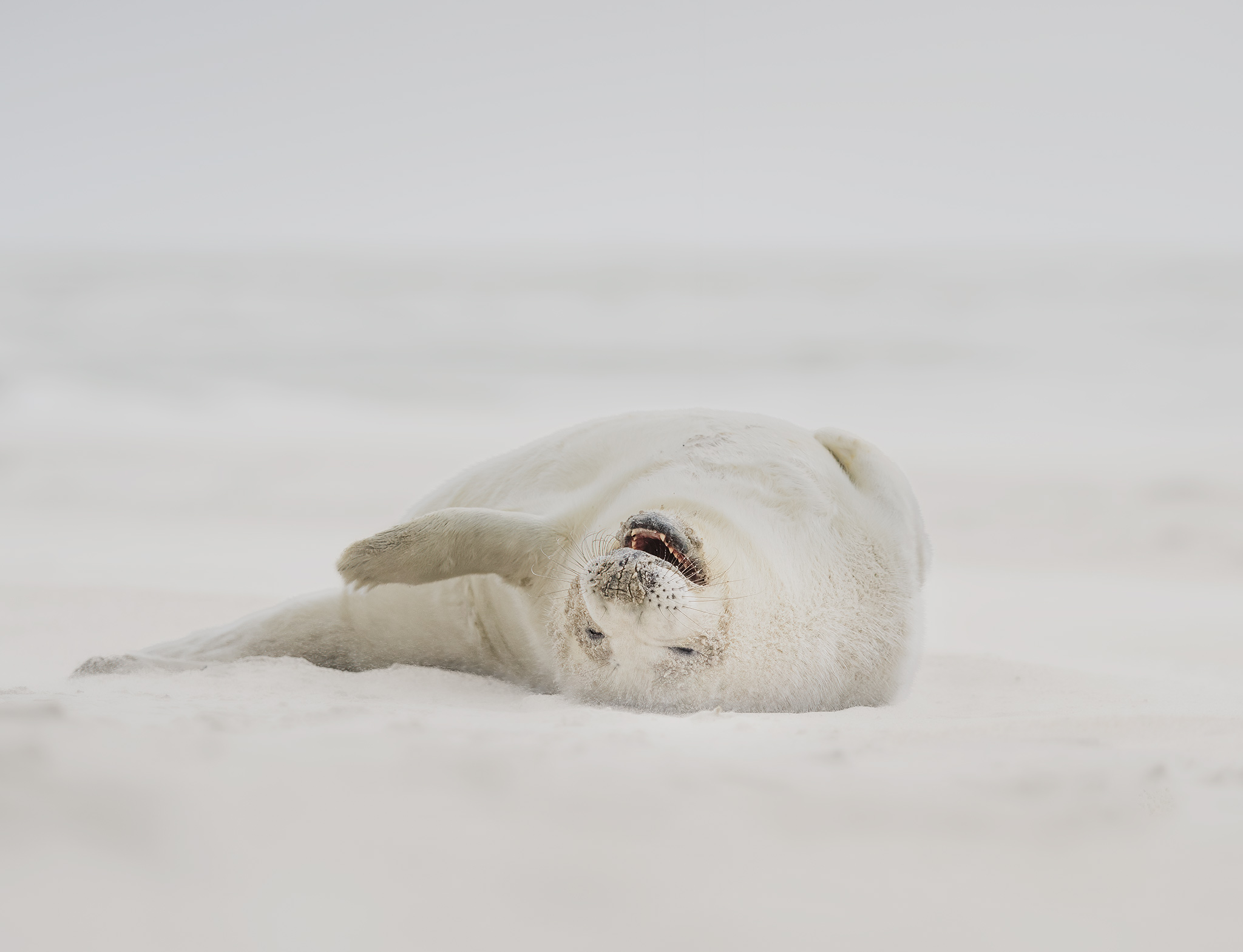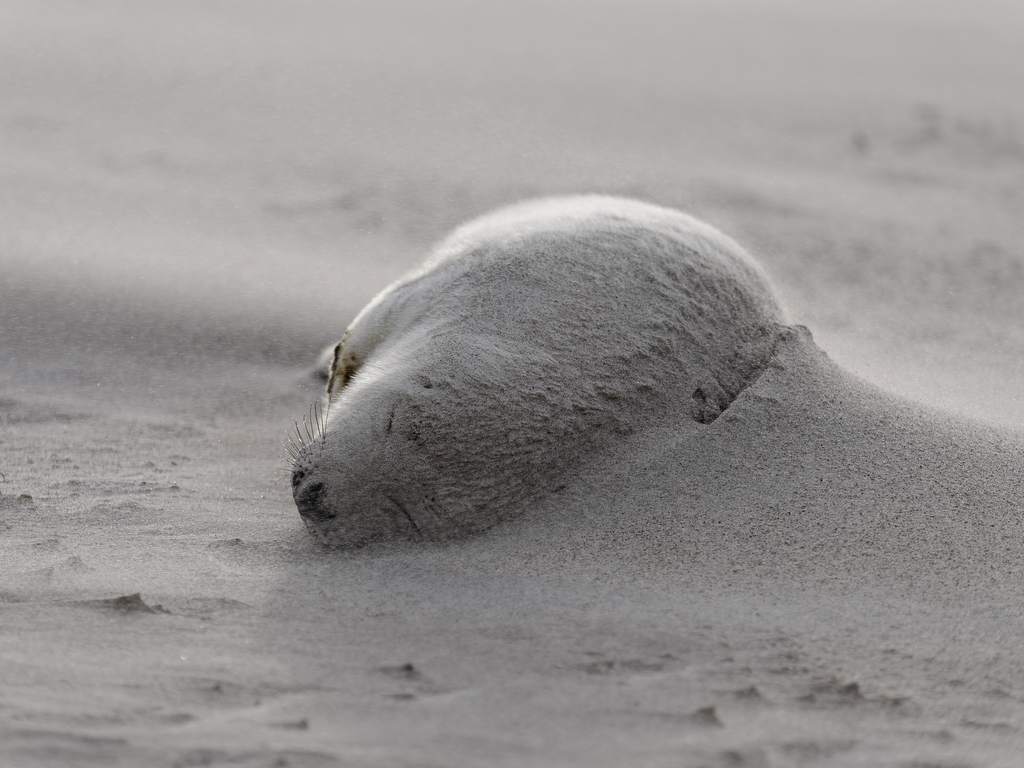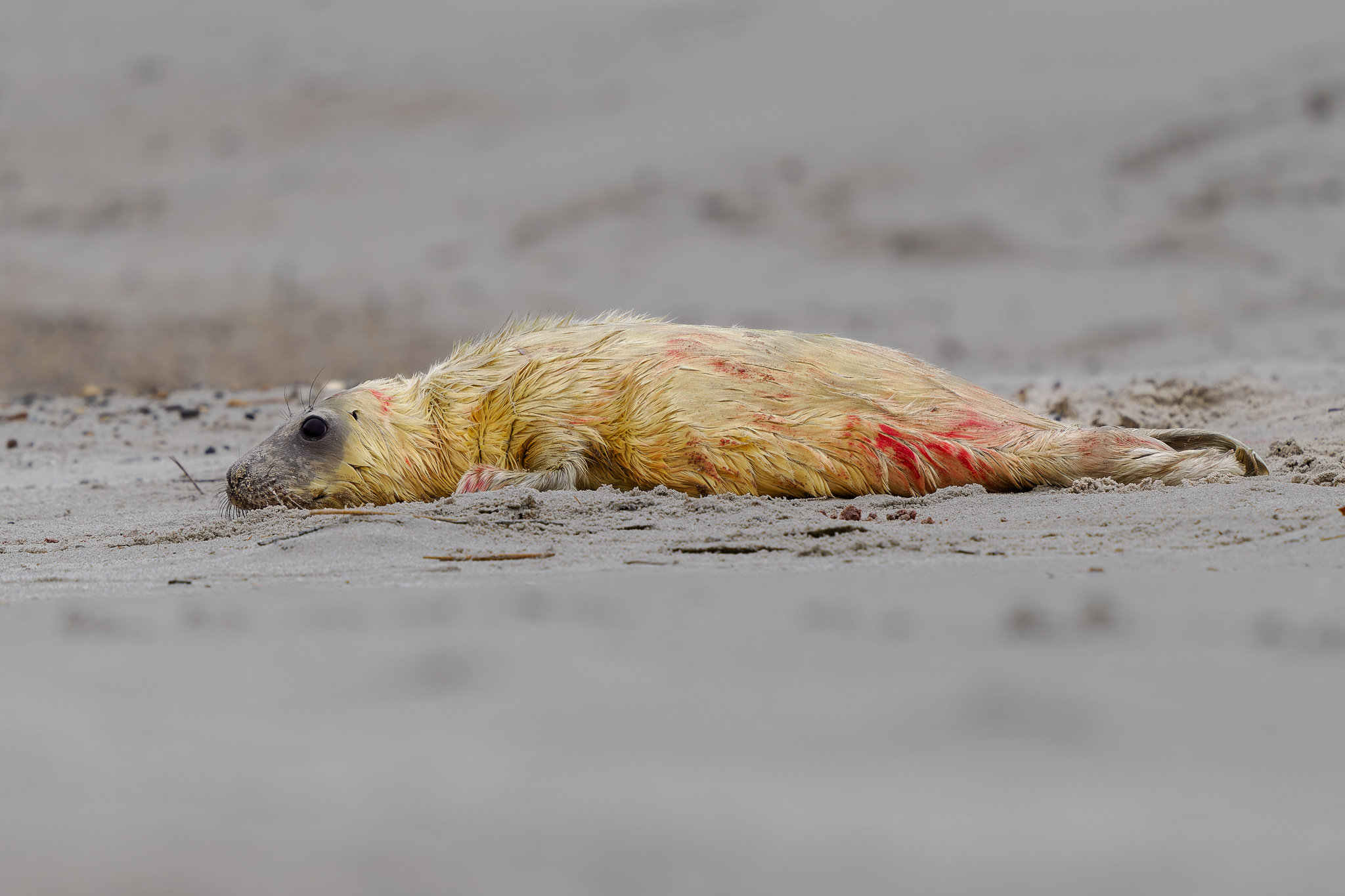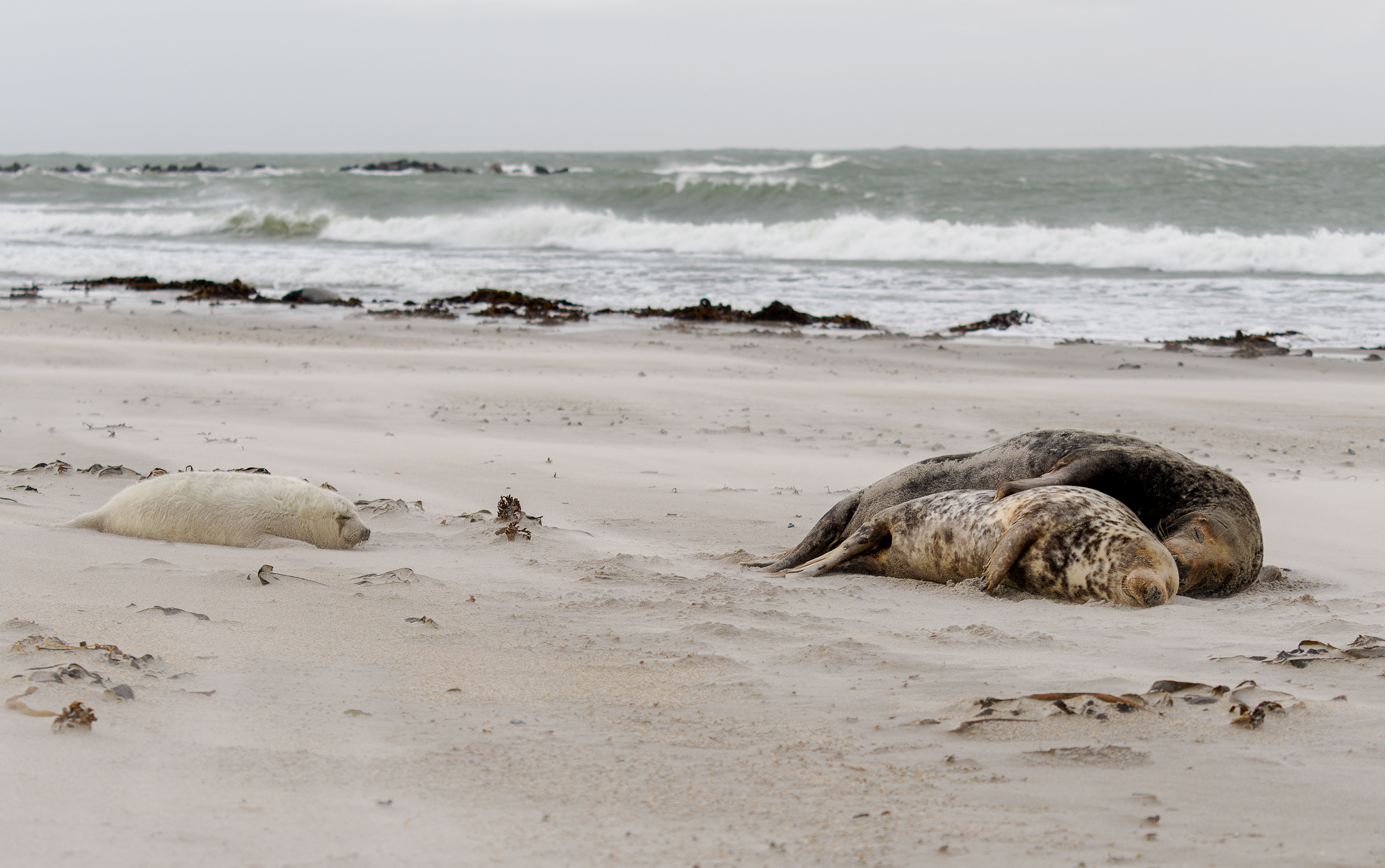 Počasí je jak na houpačce, chvílí svíti slunce a za chvíli se strhne bouřka a silný vítr, kdy přes létající písek a vodu není téměř nic vidět. Tuleni si ale počasí moc nevšímají, a dál se spokojeně povalují po pláži. Je to neskutečná nádhera, vidět tolik maličkých mláďat. Některá jsou už měsíc stará, některá mají teprve pár dní.