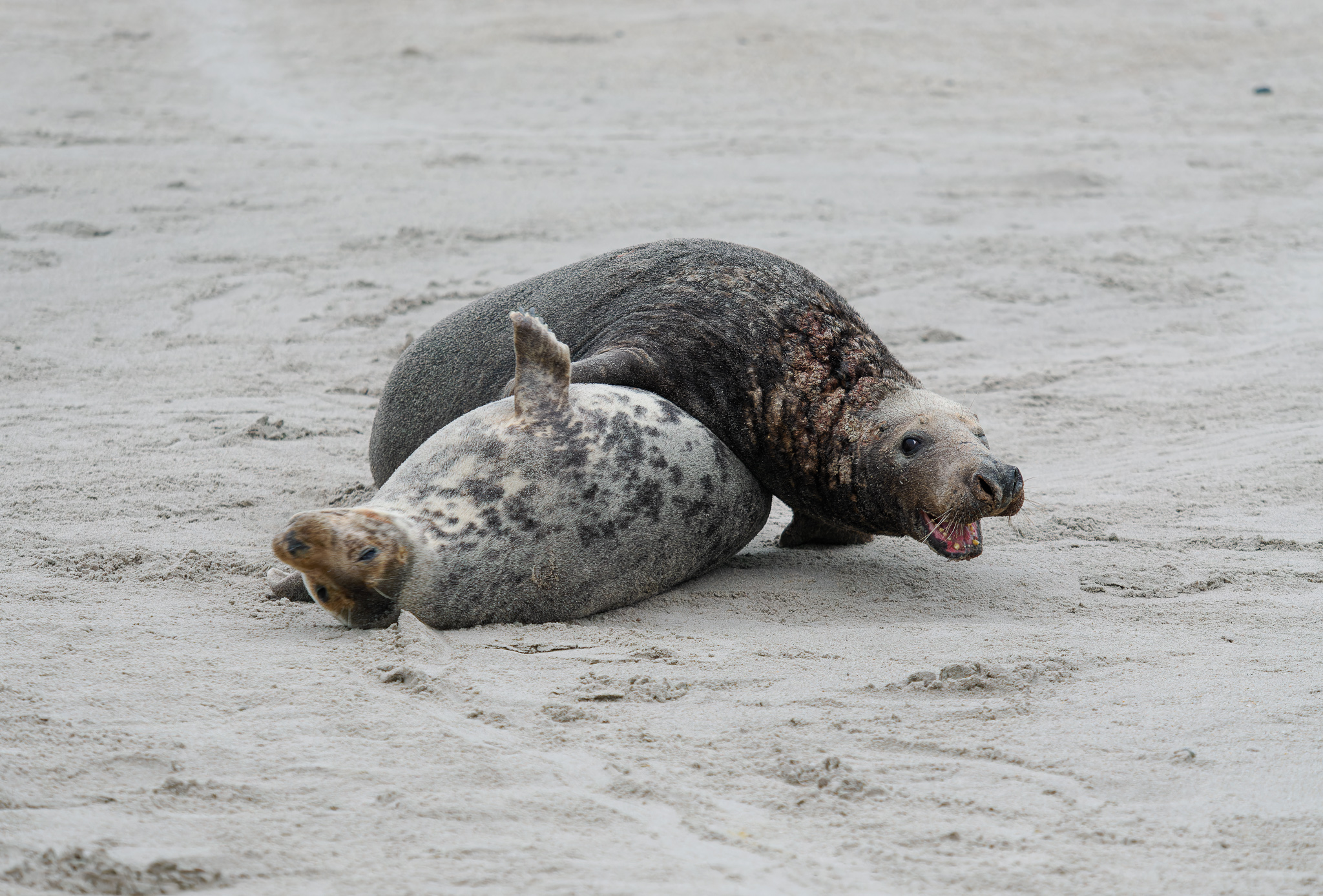 Občas dojde k pokousání, ale to si většinou turisté zaviní sami. Pokud uvidíte, že je nějaký tuleň do něčeho zamotaný, není dobrý nápad, jít ho vysvobodit. Od toho jsou tam ochranáři, kteří vědí, jak jim pomoci, bez újmy vlastní i jejich. Bohužel někdy se těm „dobrým skutkům“ nedá zabránit, a proto tam mají nachystaný vrtulník, který toho dobrodince přepraví do Německa k ošetření. Zuby mají opravdu špičaté a ostré jak pilka.