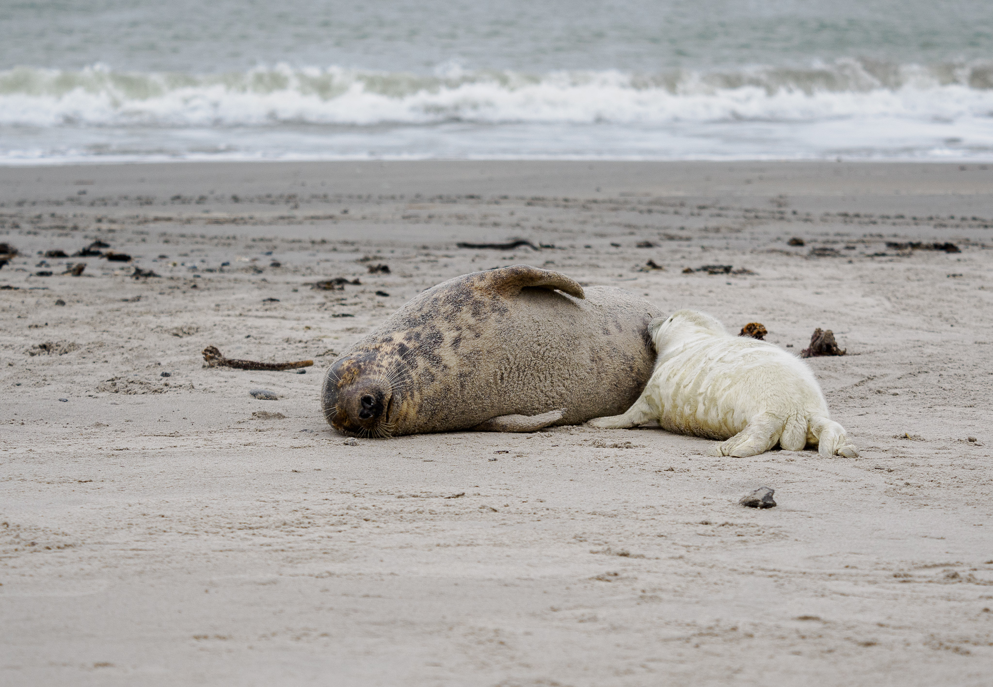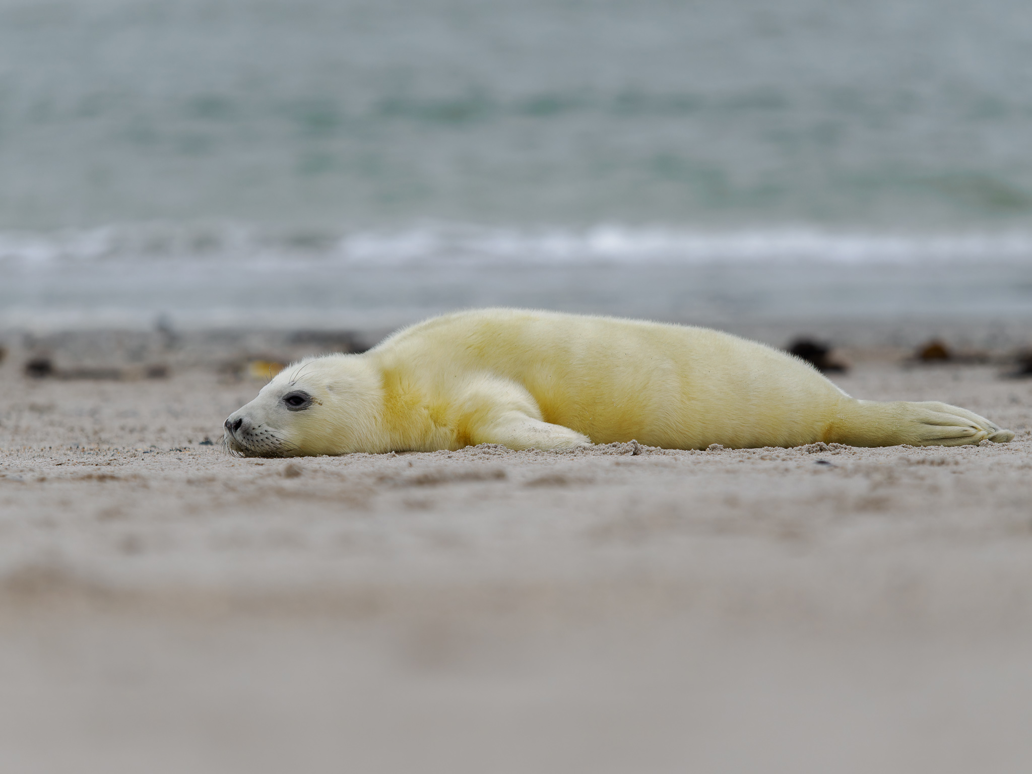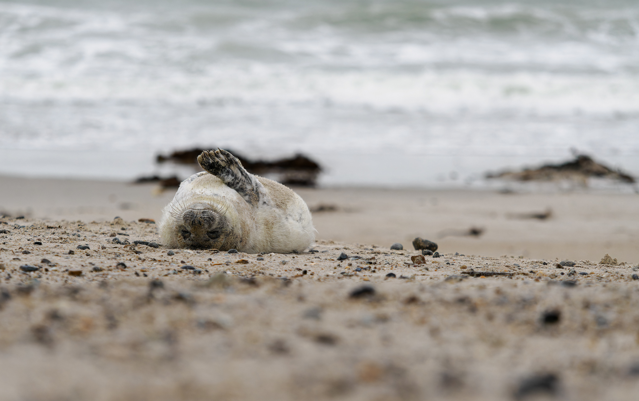 Ochranář nám říká, že letos tam mají asi 700 mláďat, je úžasné, že se jich tolik rodí. Helgoland je plný turistů, ale na Düne nás jezdí jen tak něco kolem 10, takže tu panuje naprostý klid. Většina turistů řeší svátky a konec roku, tuleni na Düne jsou pro ně až moc velký „extrém“.