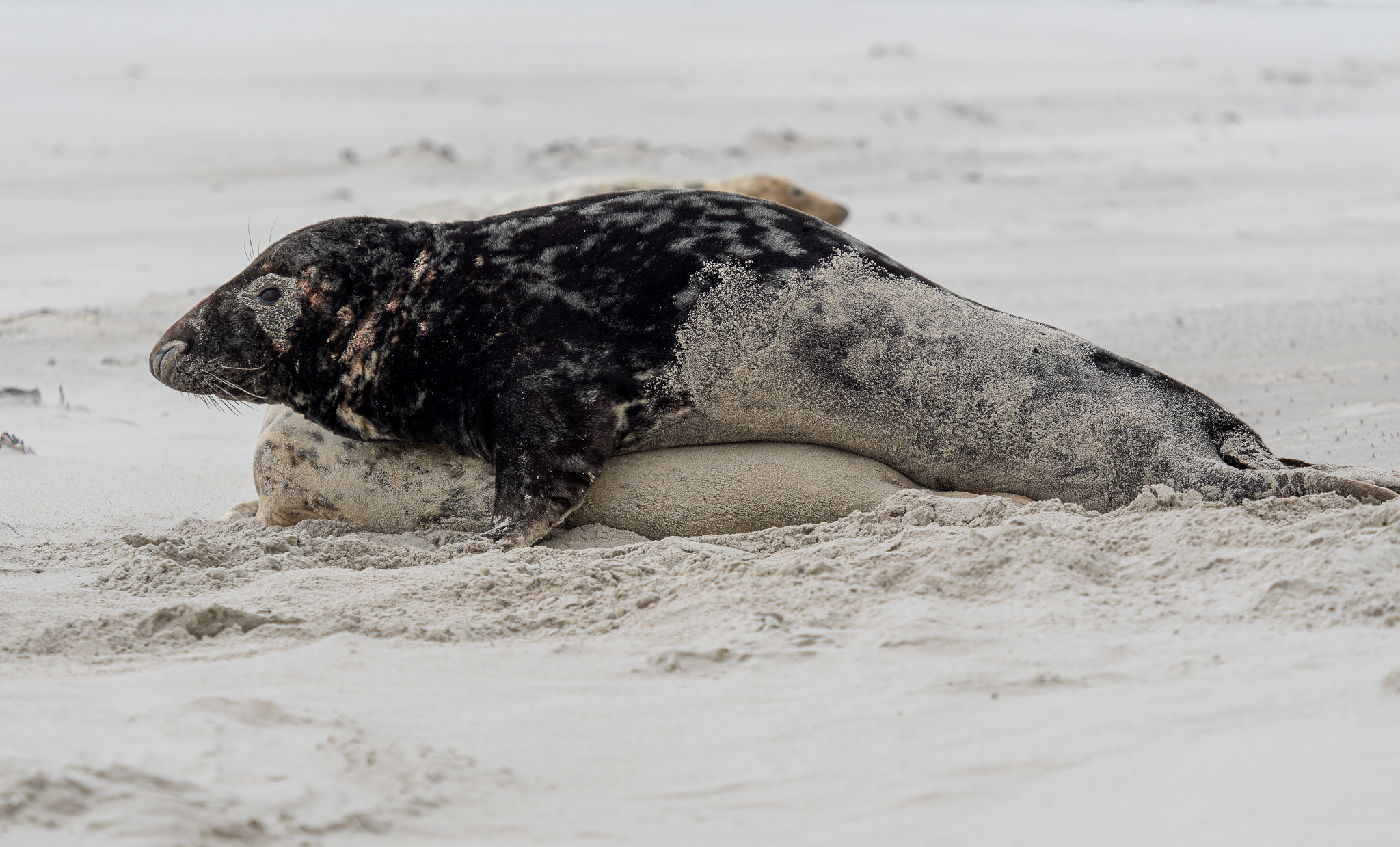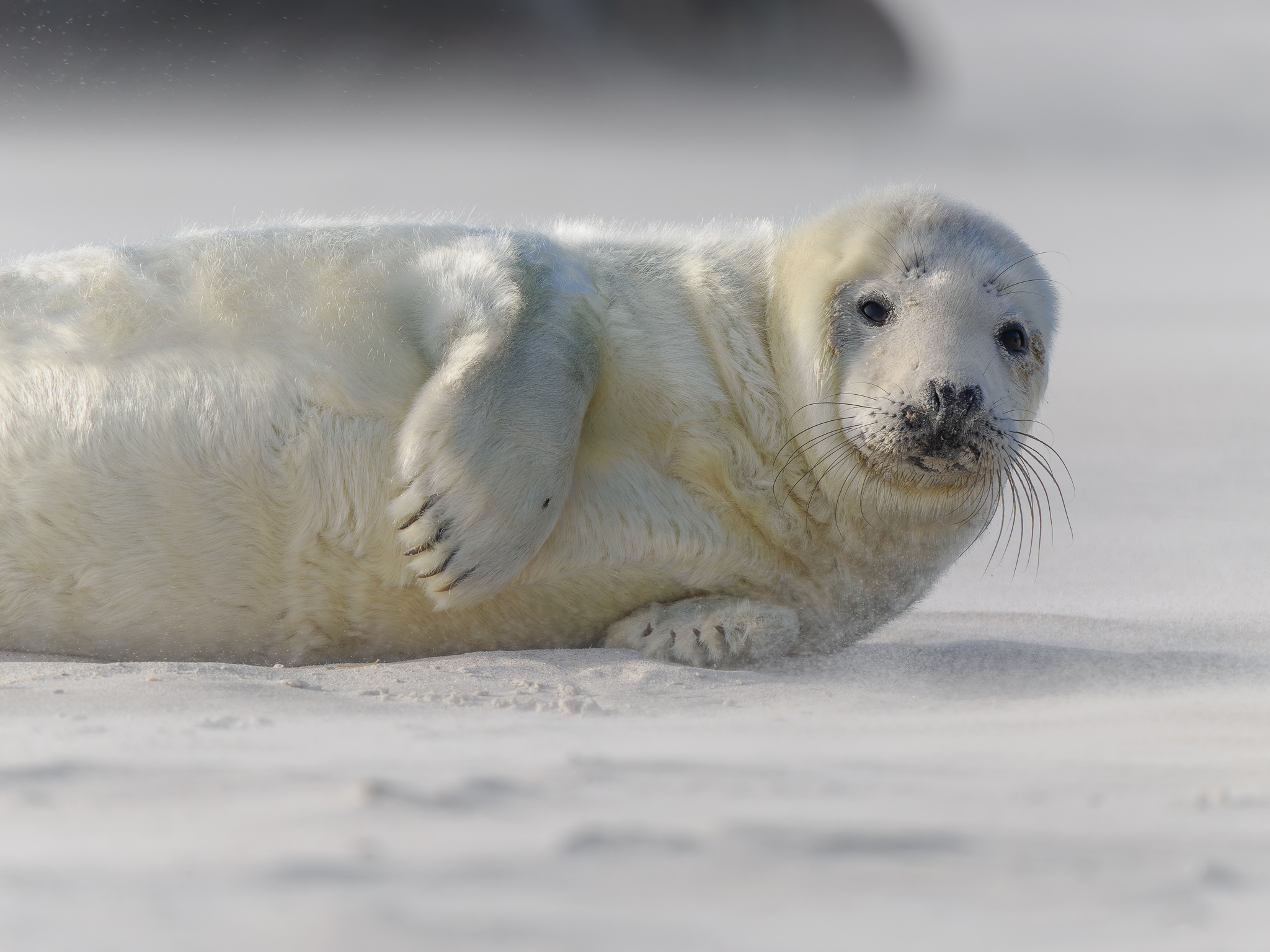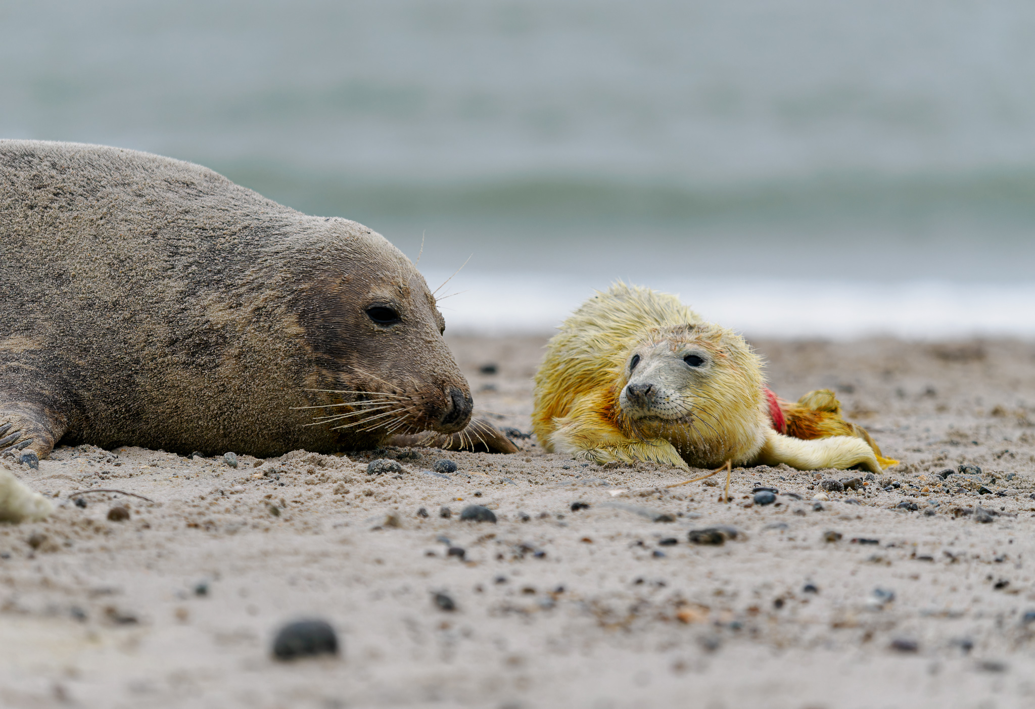 Ochranář nám říká, že letos tam mají asi 700 mláďat, je úžasné, že se jich tolik rodí. Helgoland je plný turistů, ale na Düne nás jezdí jen tak něco kolem 10, takže tu panuje naprostý klid. Většina turistů řeší svátky a konec roku, tuleni na Düne jsou pro ně až moc velký „extrém“.