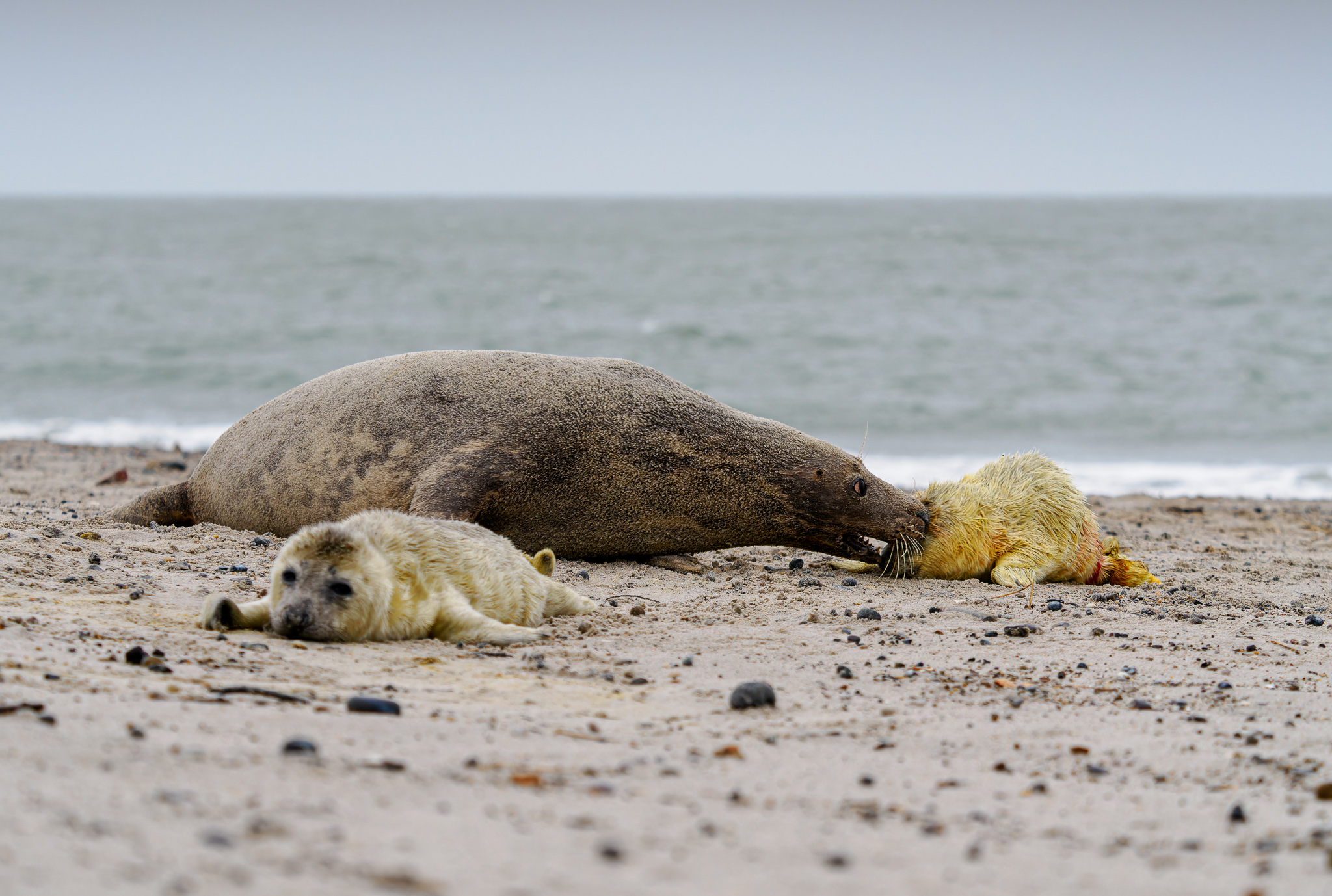 Počasí je jak na houpačce, chvílí svíti slunce a za chvíli se strhne bouřka a silný vítr, kdy přes létající písek a vodu není téměř nic vidět. Tuleni si ale počasí moc nevšímají, a dál se spokojeně povalují po pláži. Je to neskutečná nádhera, vidět tolik maličkých mláďat. Některá jsou už měsíc stará, některá mají teprve pár dní.