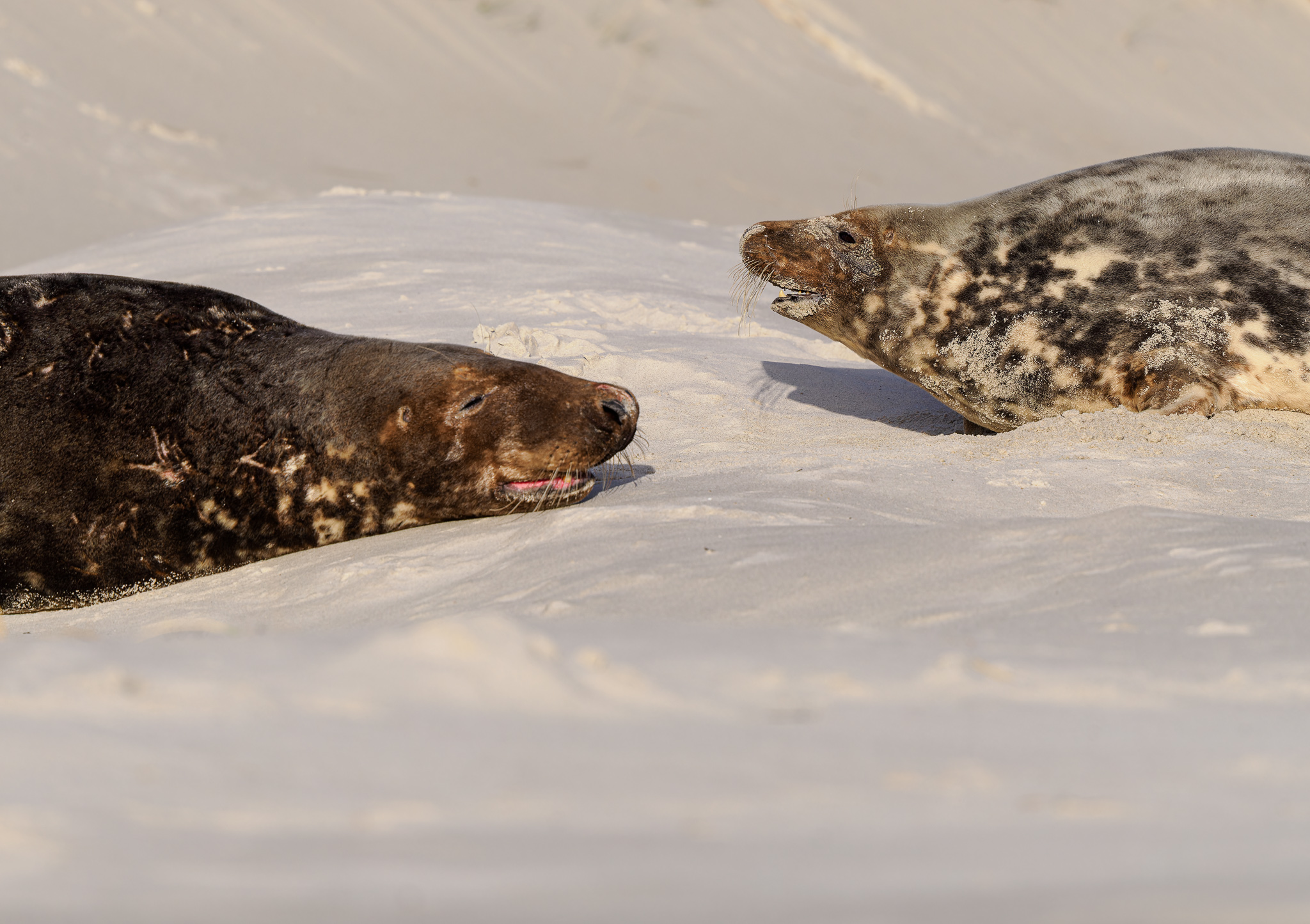Občas dojde k pokousání, ale to si většinou turisté zaviní sami. Pokud uvidíte, že je nějaký tuleň do něčeho zamotaný, není dobrý nápad, jít ho vysvobodit. Od toho jsou tam ochranáři, kteří vědí, jak jim pomoci, bez újmy vlastní i jejich. Bohužel někdy se těm „dobrým skutkům“ nedá zabránit, a proto tam mají nachystaný vrtulník, který toho dobrodince přepraví do Německa k ošetření. Zuby mají opravdu špičaté a ostré jak pilka.